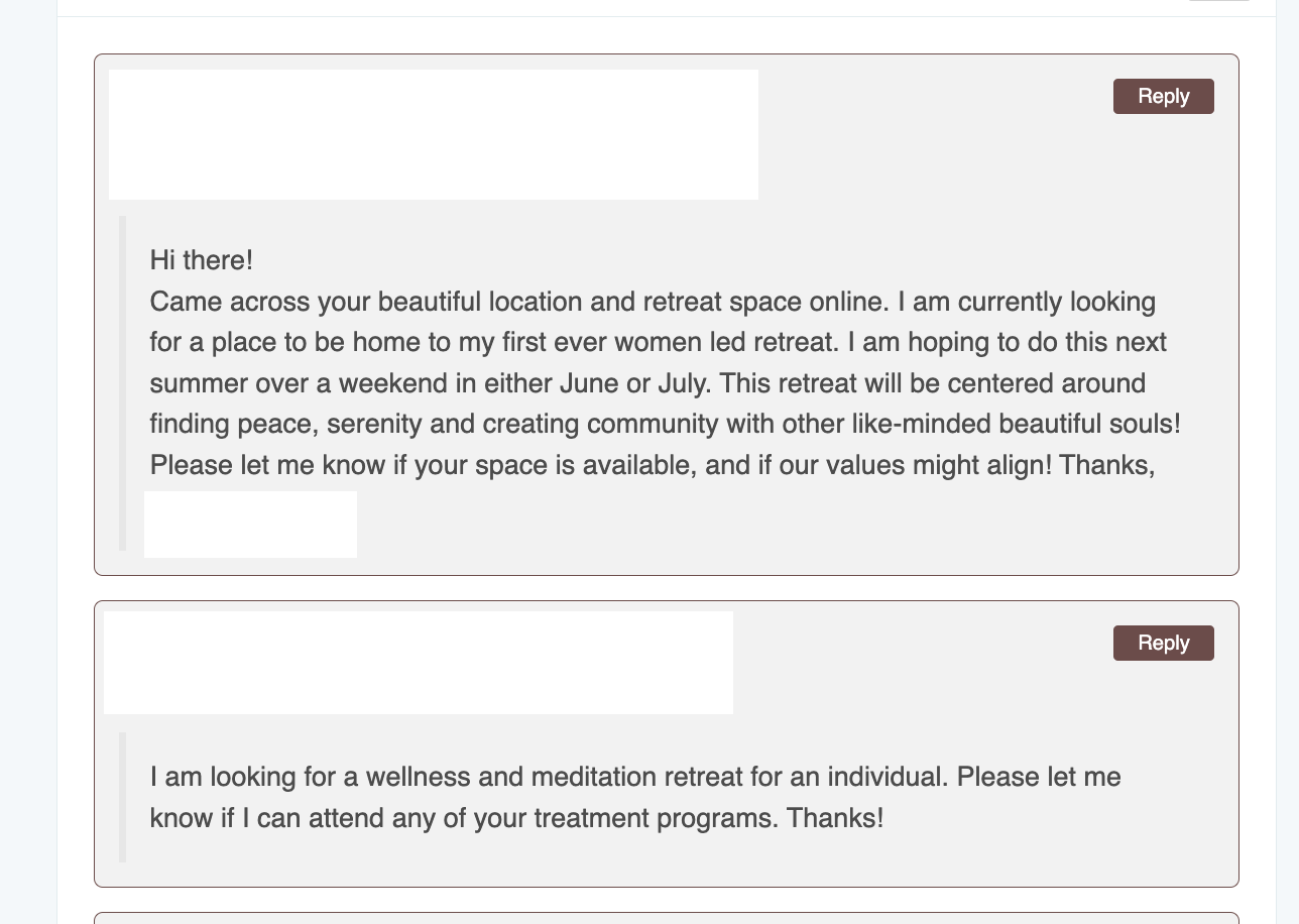 On Retreat Finder, your leads will show up directly in your sponsor portal, and you can track your listing stats in two ways.